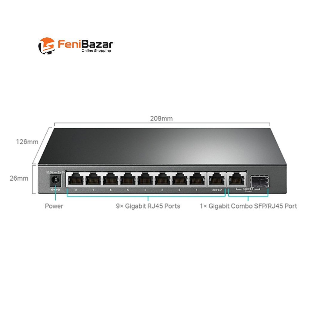 - 9× gigabit RJ45 ports and 1× combo gigabit SFP/RJ45 port