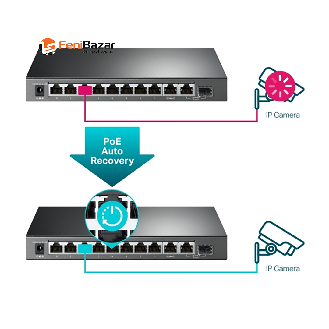 - Provides network monitoring, traffic prioritization, VLAN features, and PoE Auto Recovery