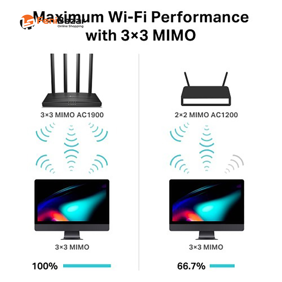 TP-Link Archer C80 AC1900 Wi-Fi Router comes with 802.11ac Wave2 Wi-Fi on the 5 GHz band and 600 Mbps on the 2.4 GHz band. This router has 3x3 MIMO Technology which transmits and receives data on three streams to pair flawlessly with your 3x3 clients and is also capable of transmitting and receiving data on three streams. 3x3 capable computers like Macs pair perfectly with C80 to perform at max with much higher efficiency than 2x2 MIMO routers. In this router, the MU-MIMO Technology helps your devices achieve optimal performance by making communication more efficient. This router is also featured with Gigabit Ethernet ports (1 WAN+ 4 LAN) to deliver maximum wired speeds. Plug in your PCs, smart TVs, and game consoles for fast and reliable connections. The new Archer C80 delivers high-performance and affordable home Wi-Fi with total speeds of up to 1900 Mbps. Handle simple tasks like sending e-mails or web browsing on the 2.4 GHz band and bandwidth-intensive tasks like online gaming or 4K/8K UHD streaming on the 5 GHz band all lag-free. In this router, Beamforming technology detects devices and concentrates wireless signal strength towards them, even if they are far away or low-powered. It's optimal performance by making communication more efficient with MU-MIMO technology and also multiple devices can send and receive data on the best available band. Enjoy non-stop entertainment. The new TP-Link Archer C80 has a 01-year warranty.